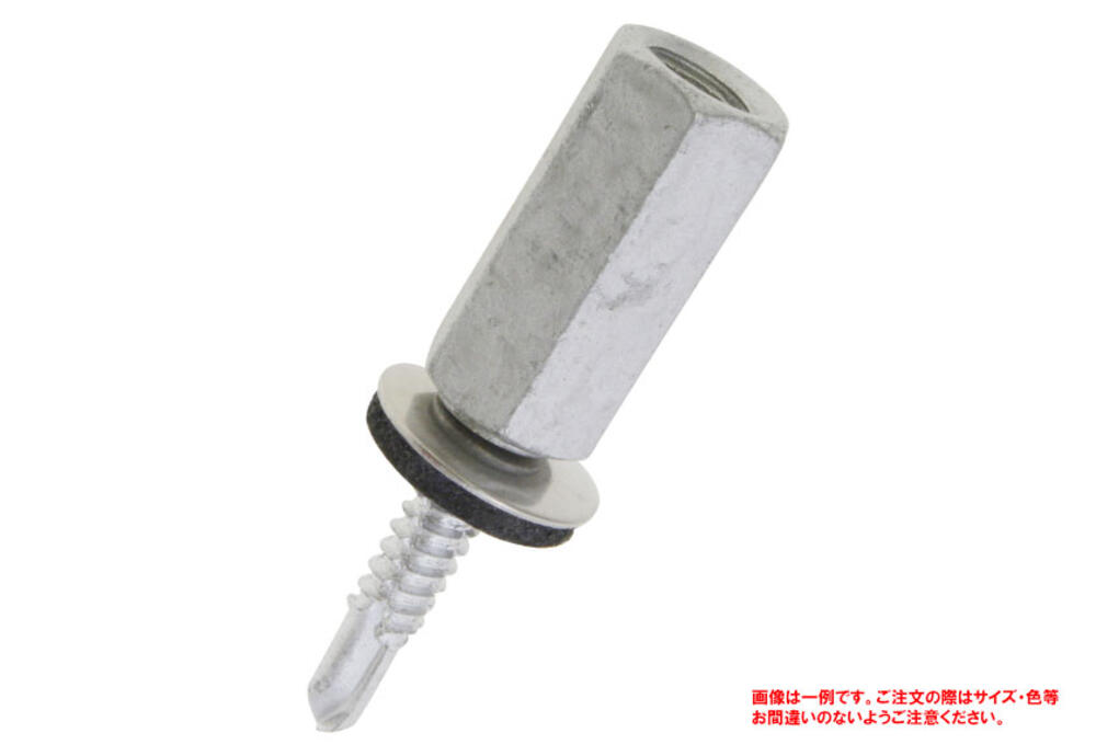 ねじ部・ナット部の材質は鋼で高耐食性防腐処理(ラスパートシルバー)。ワッシャー部はネオプレンにステンレスを一体化したシールワッシャーでクッション性を備え完全密着し振動にも耐えます。対辺14mmのソケットビットにて締め付けてください。吊りボルト取付工事の省力化に。