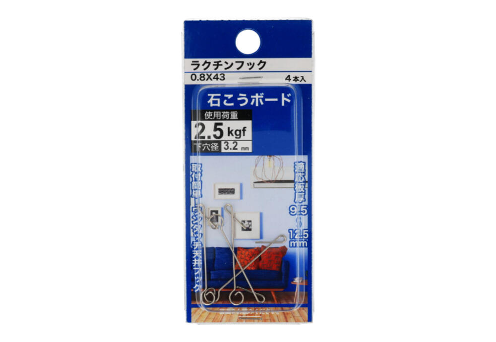 石こうボードの天井に物を吊り下げたりするときに使用する取付け簡単なフックです。線材が0.8mmなのでお部屋・店舗などで目立たず取付けられます。