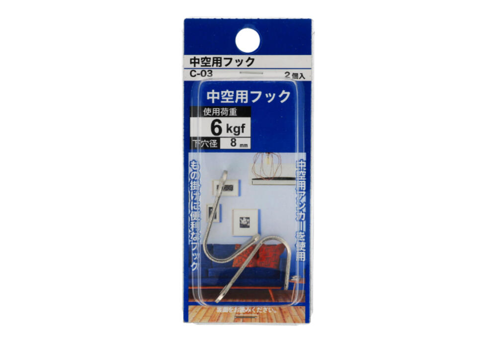 中空壁・石こうボード用に取り付ける便利なフック。中空用アンカーとセットでお使いください。