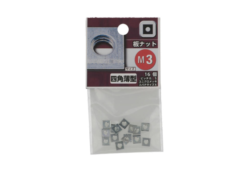 薄板よりプレス加工した4角ナットです。主に小ねじと組合せて使用されます。あまり強度を必要としない場所に適しています。