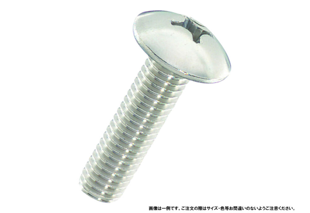 十字穴付きのトラス頭小ねじ。頭部が出ても差し支えない所に使われます。座面が大きいので、座面陥没を防止する効果有り。