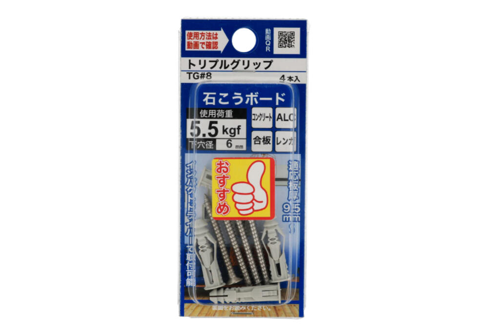 どの石こうボード(9.5mm、12.5mm、15mm厚)にも対応。※写真はTG#8。