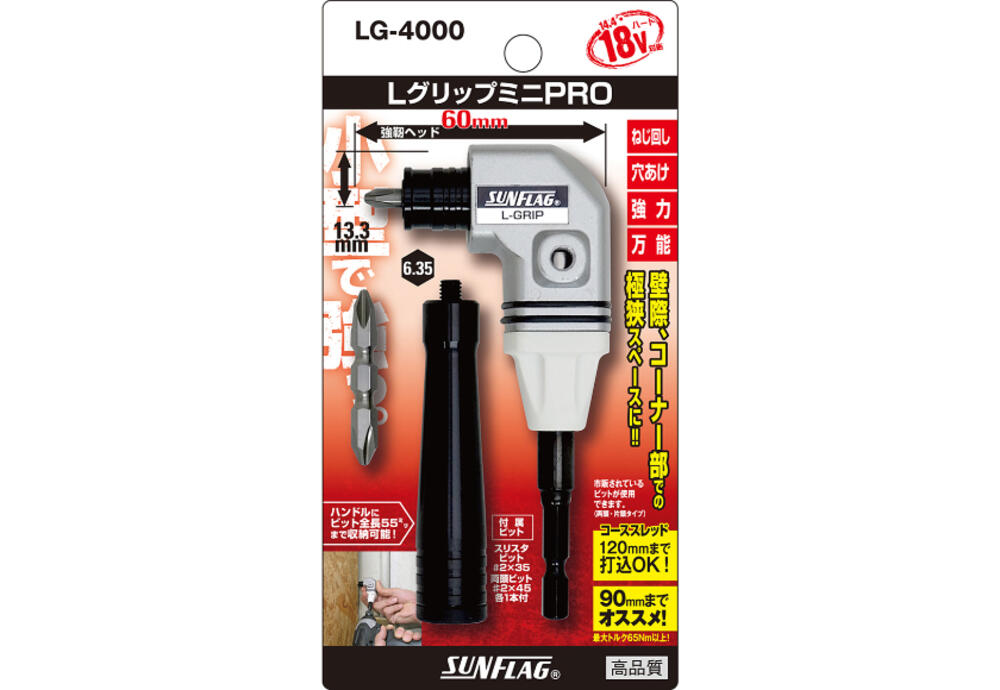 ●壁際・隅・コーナー部のビス止め作業などに便利です。●18V対応でパワフルな作業が可能です。●スリムヘッドを採用しています。●充電・電動ドライバーに装着するだけで、スペースのない箇所での作業に最適です。●コーナー部・機械の入りにくい箇所・奥まった箇所・壁際での作業などに