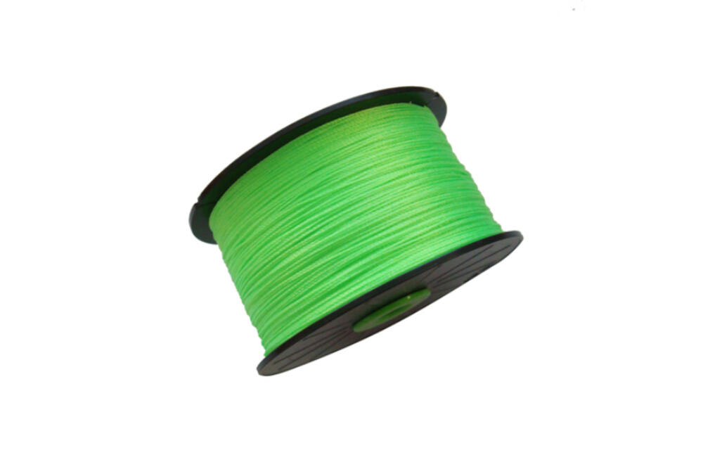 糸の色:蛍光グリーン。●糸の太さ:細(約0.5mm)。●長さ:500m。●回転軸付きリール巻。