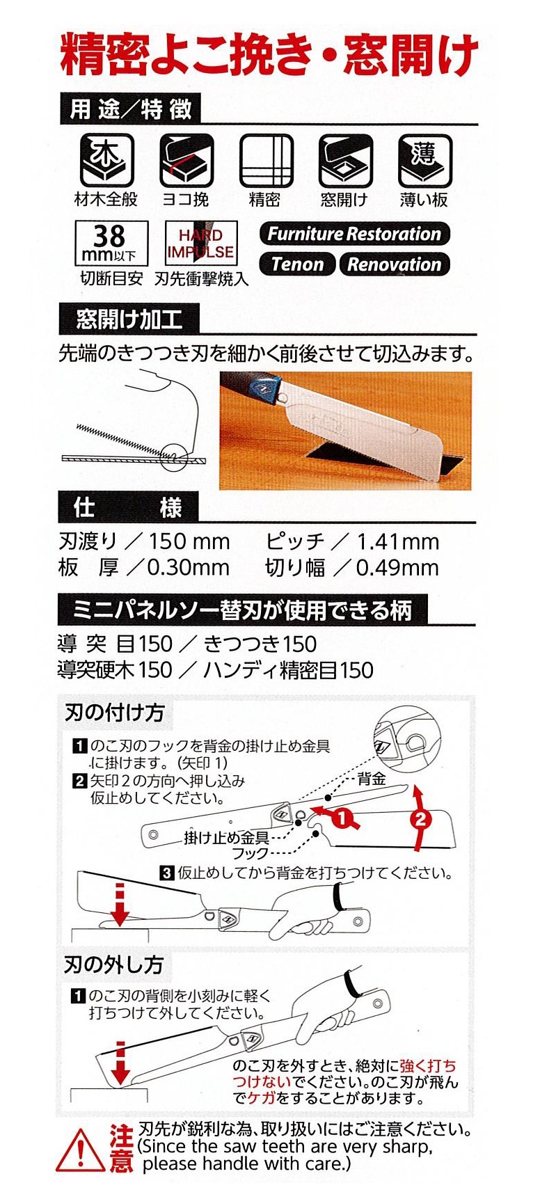 ●切り幅:0.49mm ●刃:SKS5 ●柄:エラストマー樹脂 ●背金:SUS |