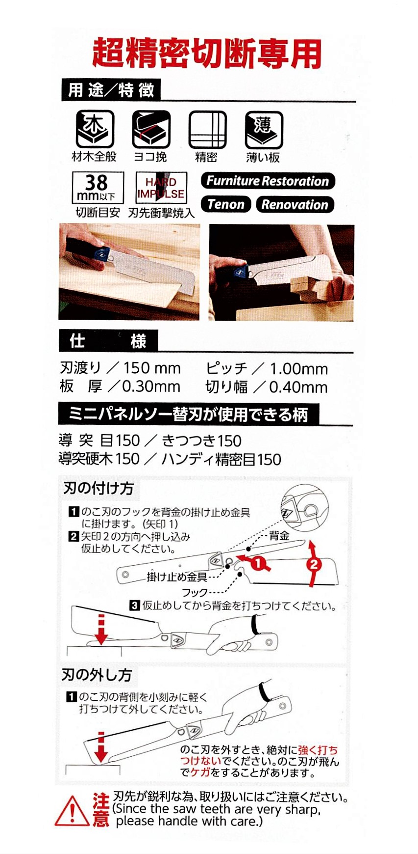 ●切り幅:0.40mm ●刃:SKS5 ●柄:エラストマー樹脂 ●背金:SUS |