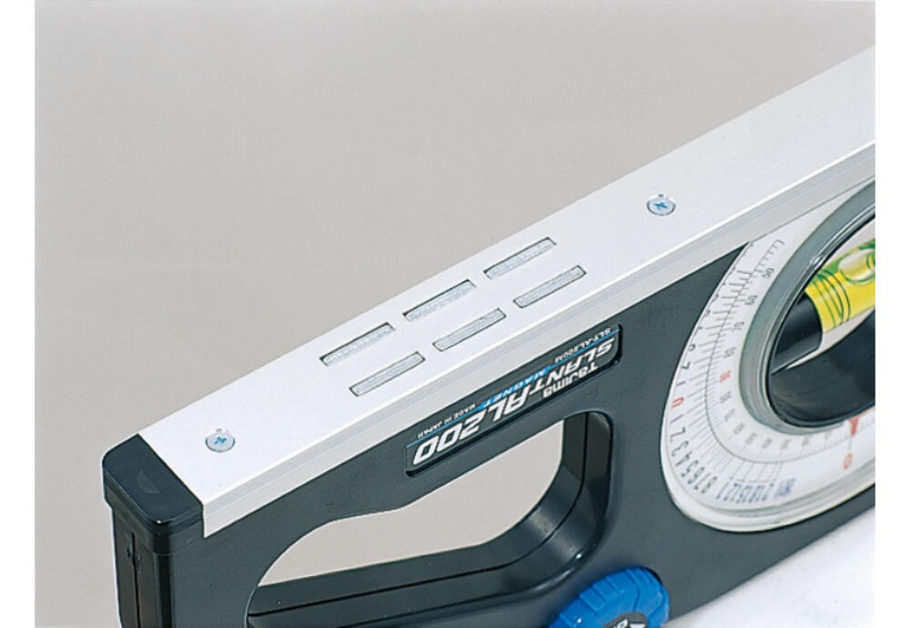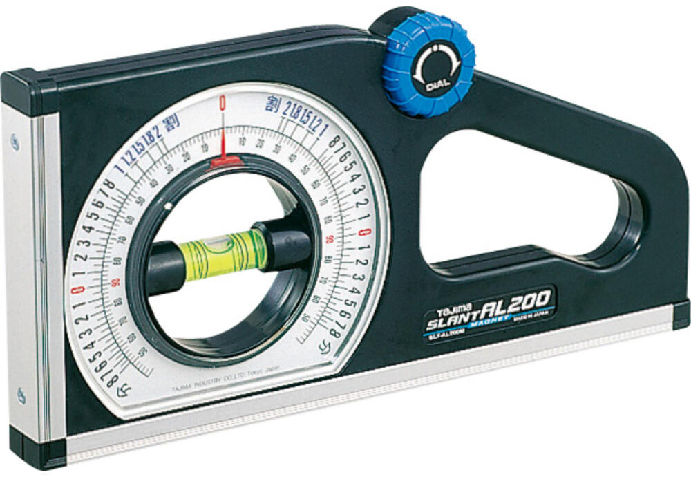 土木・建築工事用勾配計●高精度アルミ底面仕様●最小読取角度:2°●測定範囲:130°-0°-130°●目盛仕様:内側2°通し、外側1分~8分(0.5分目盛通し)●法勾配及び角度対照表付●マグネット付 (長側測定面)