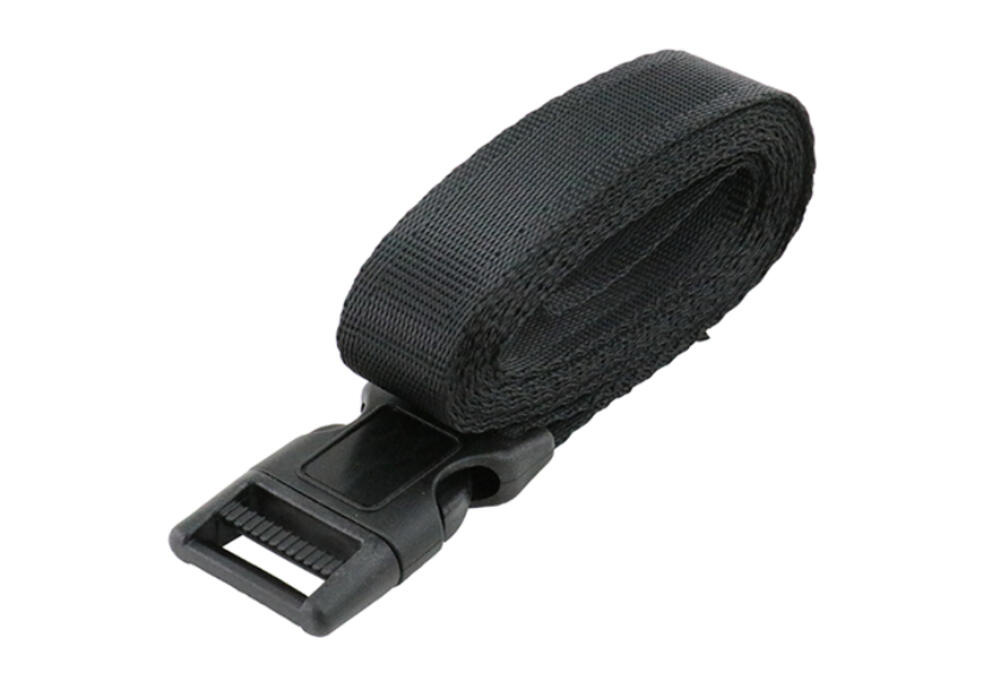 ベルト幅:25mm。●全長:2m。●最大使用力:0.2kN(20kg)、破断荷重:0.8kN(81kg)。●バックルの種類:ワンタッチバックル。●端末の仕様:エンドレス。