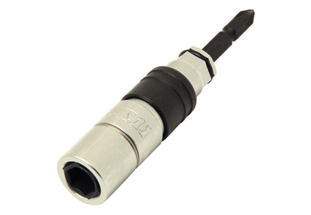 デジタル化に伴う各種工事、エクステリア工事に電動工具、電工ドライバー、メガネラチェットと組み合せて使用できます。●お手持ちの110mm以上のビットを取付けてひっくり返すと、対辺8mmのボルトナットも廻せます。●駆動軸差替え式を採用しているので、万一軸が折れてもお手持ちの75mm以上のビットで使用できます。●今お使いの電工ドライバーに装着が可能です。●電動工具、手工具レンチそれぞれに装着可能です。