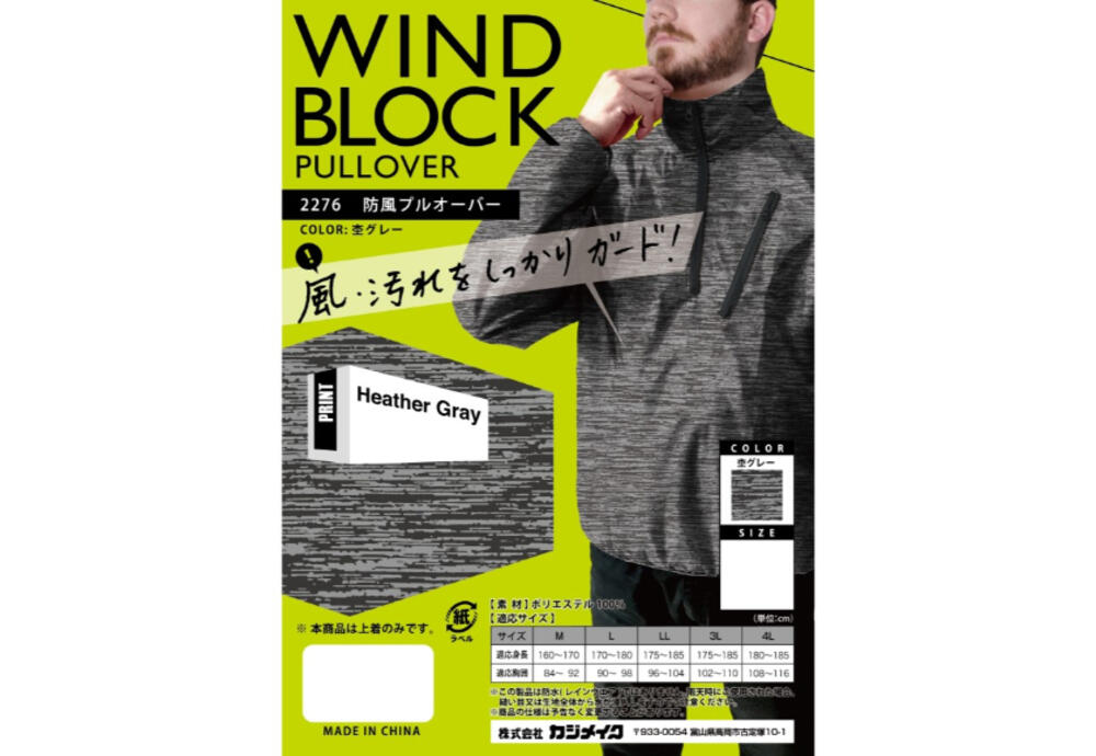 2276 防風プルオーバー杢グレーL 商品番号hwpro4054963527276210