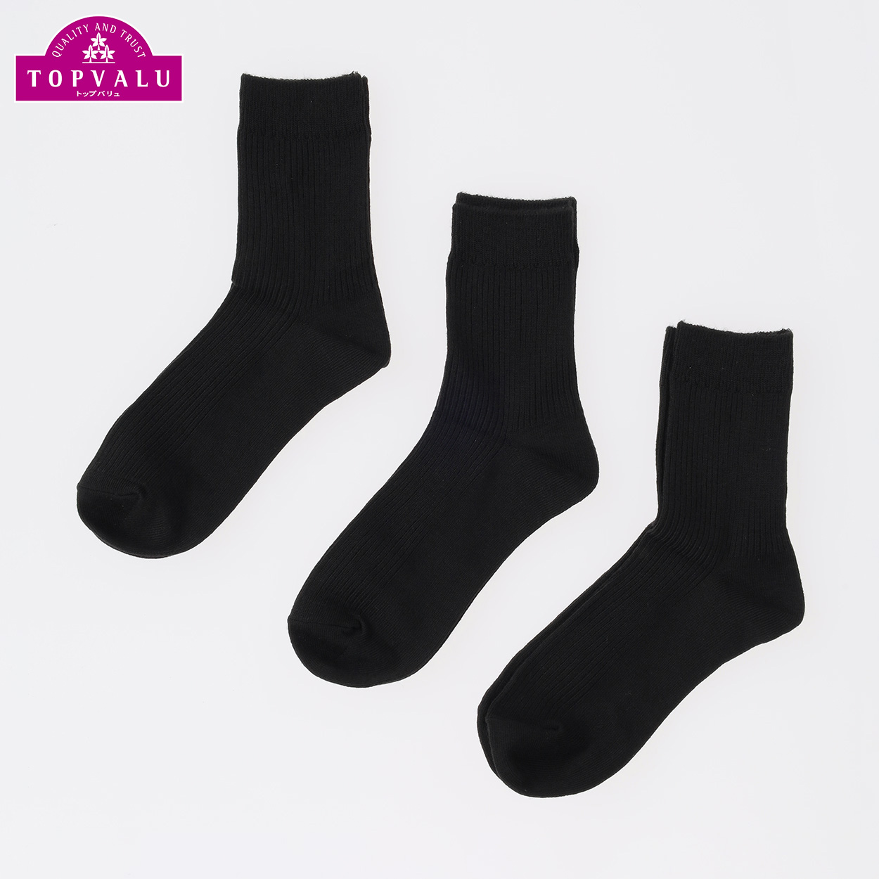 カジュアルソックス リブ無地クルー3足組 クロ 23~25cm 商品番号inner1554973996121515