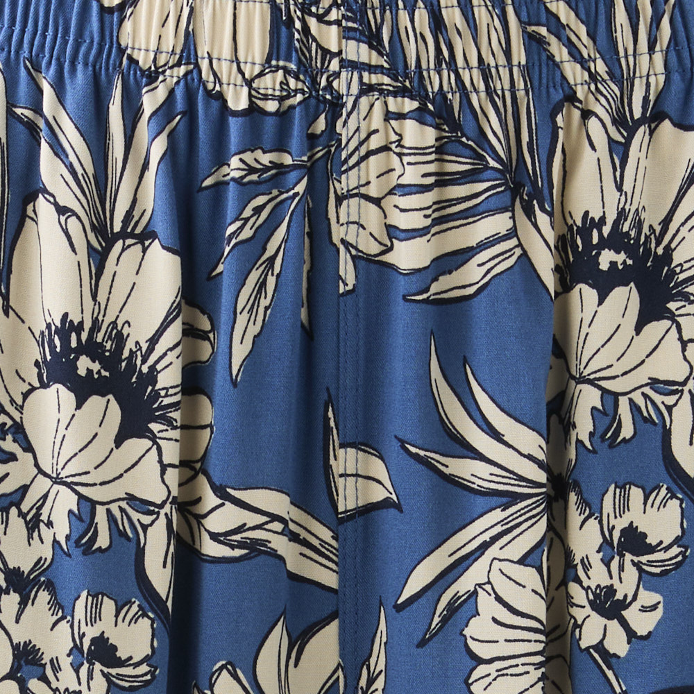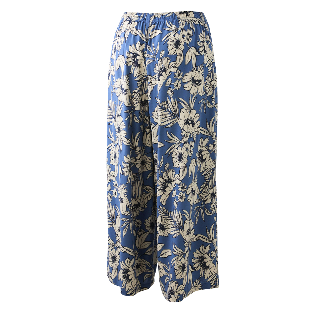 レディス ゆるーむ 9分丈パンツ フラワー アオ L 商品番号inner1572315752154153