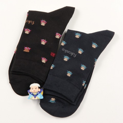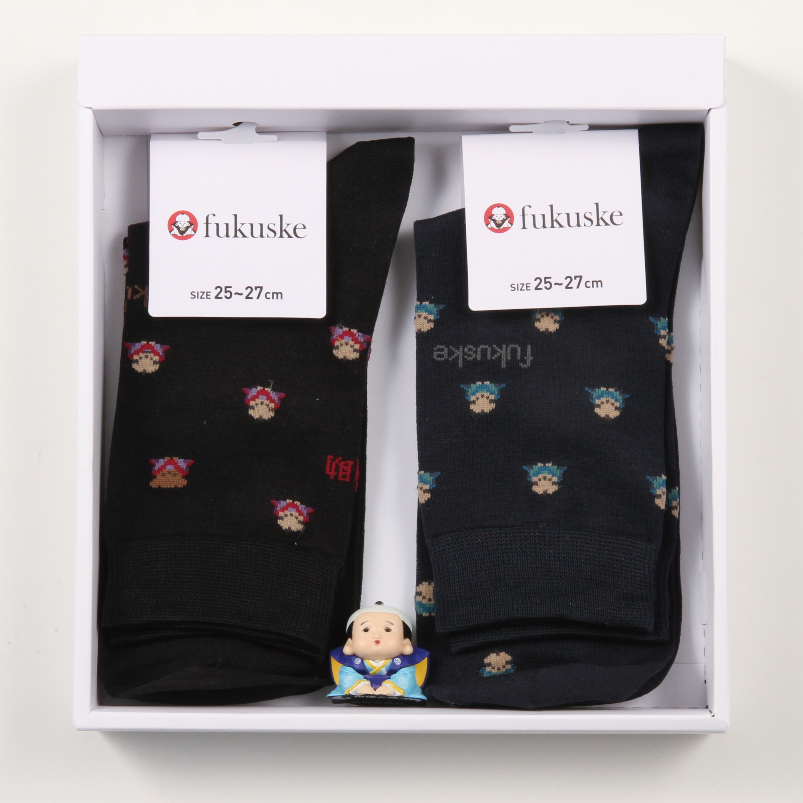 福助人形をデザインした開運靴下に七福神人形(福禄寿福助)付き