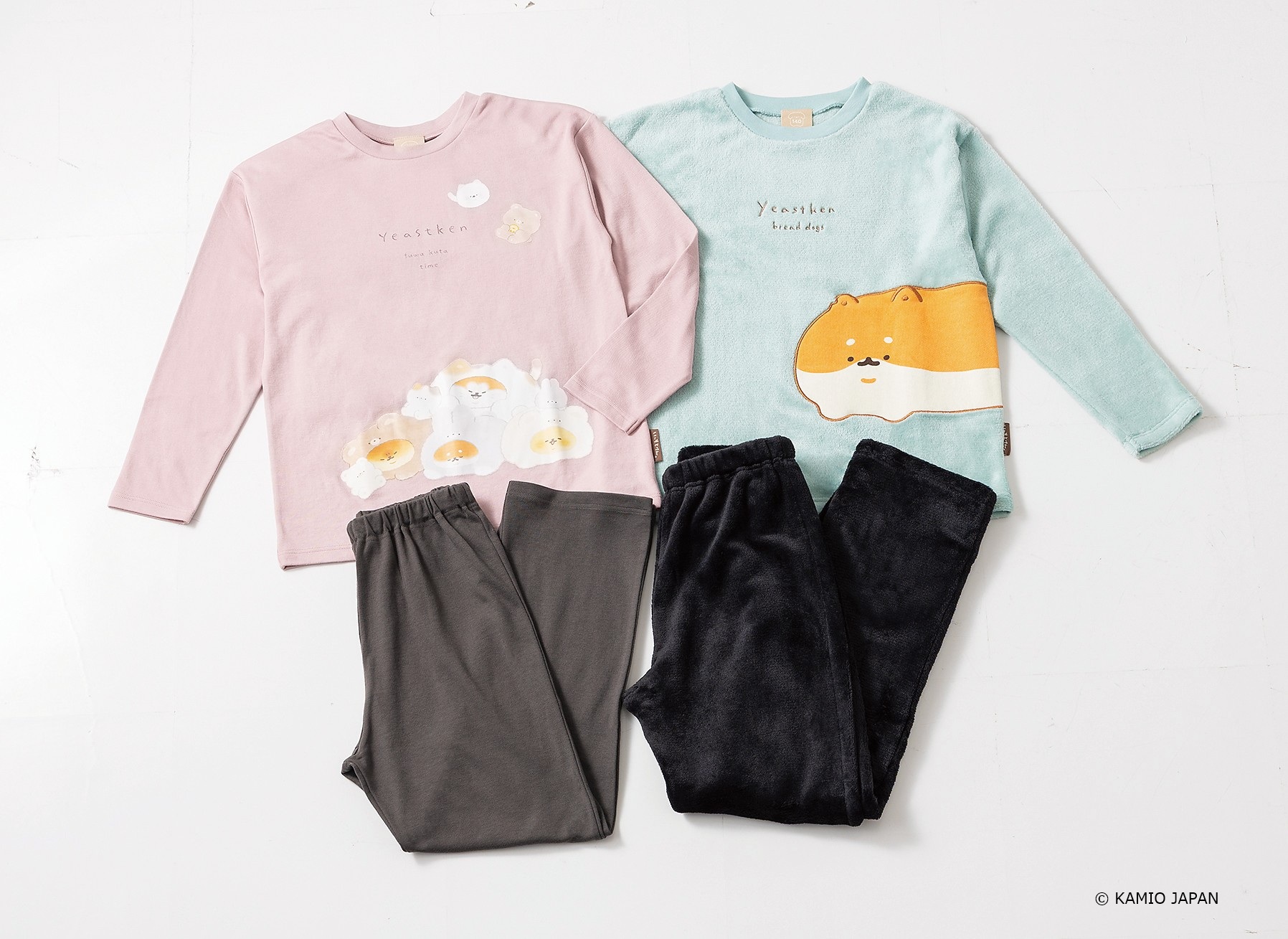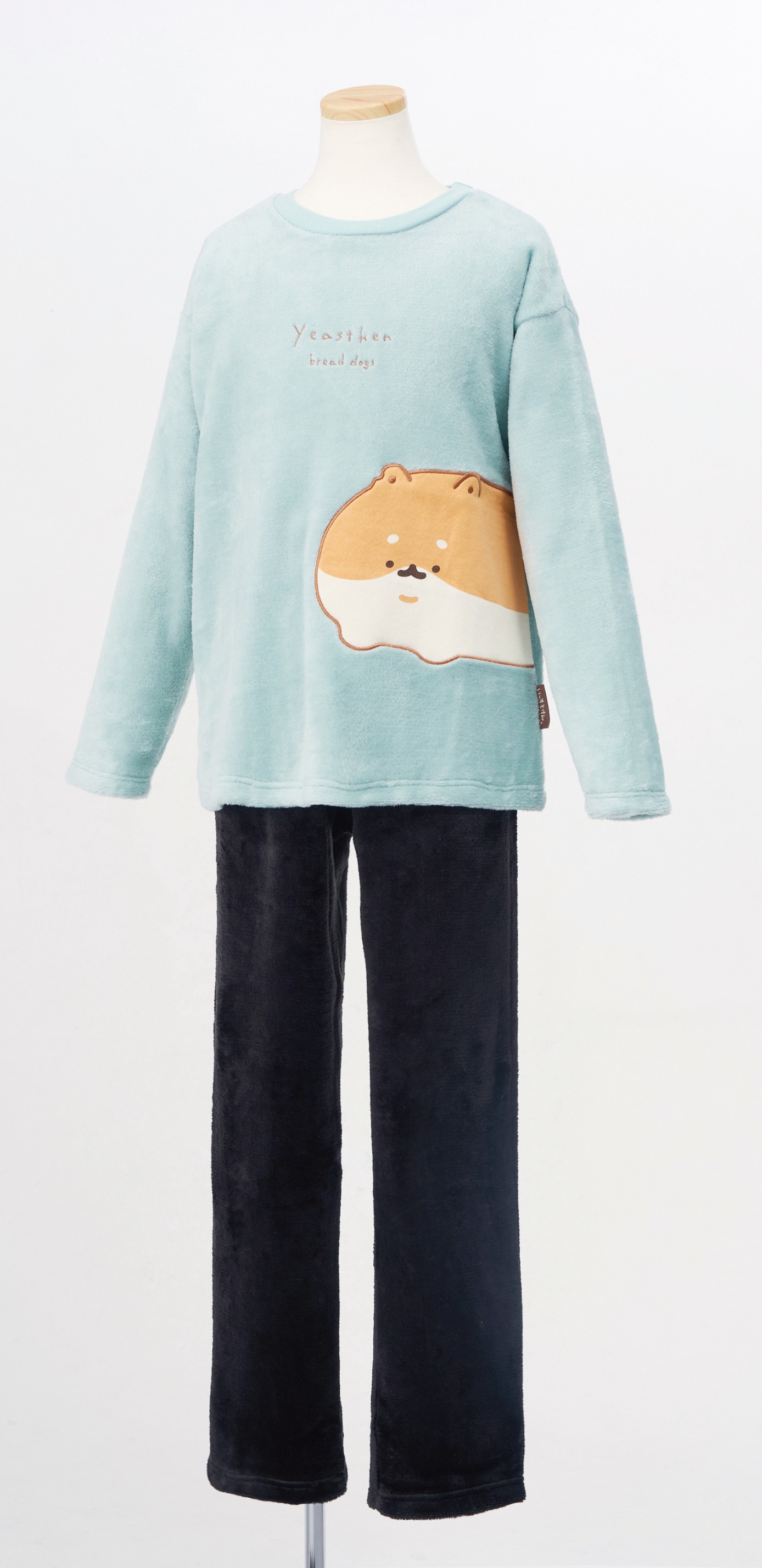 スムス素材とフリース素材の2組セットパジャマです。 専用の巾着入りです。