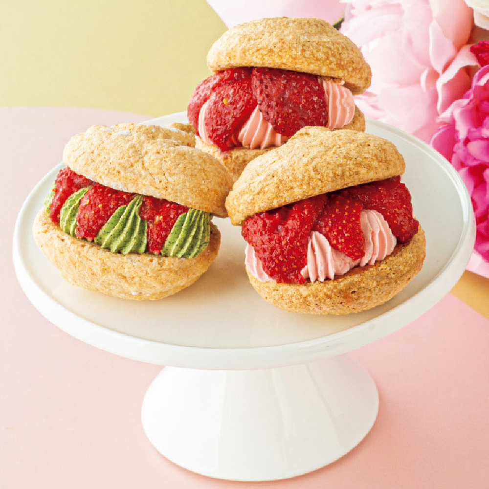 外はさっくり、中はふんわり焼き上げた生地に、バタークリームと苺のコンポートをサンドしました。