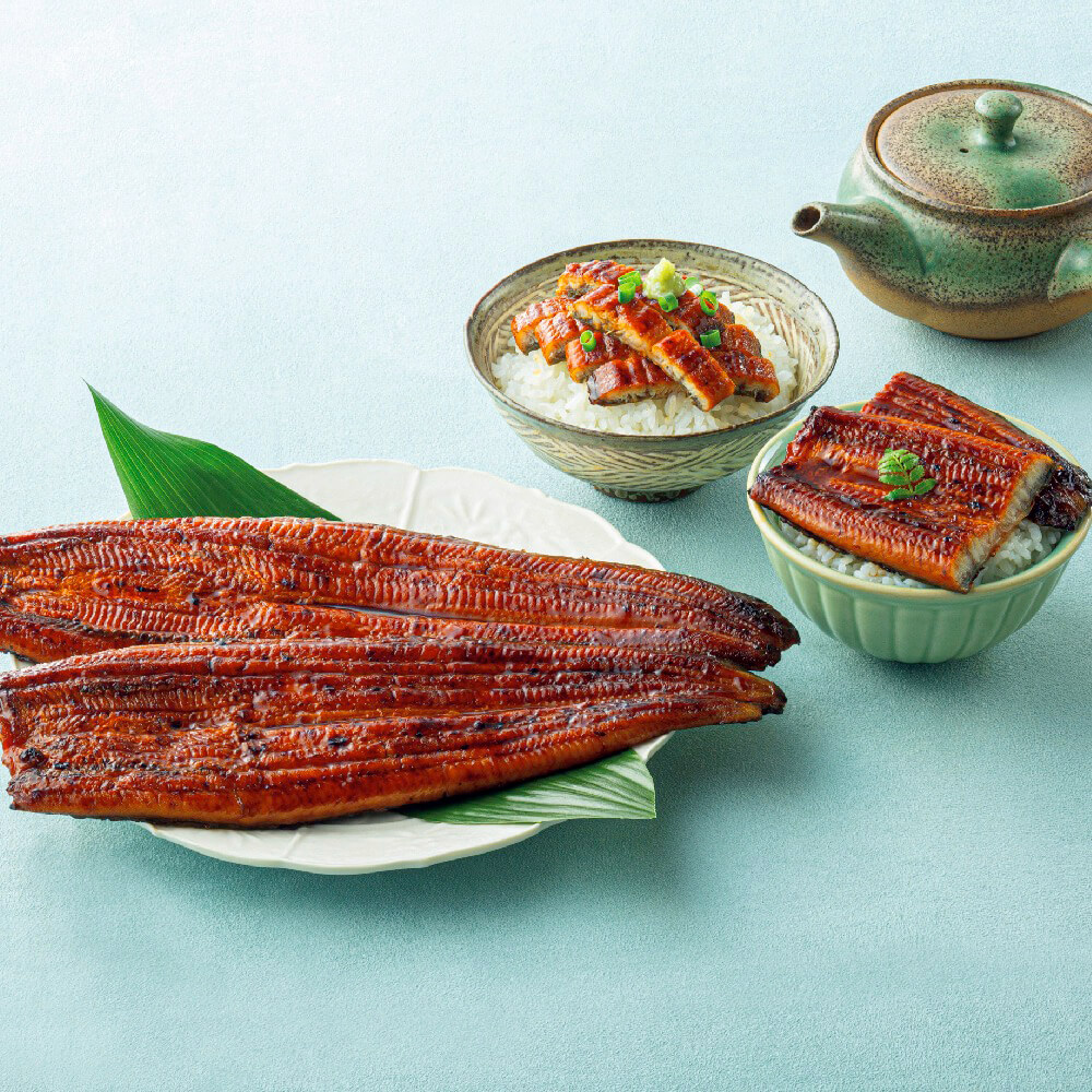 自社養鰻場で無薬にこだわり育てたうなぎの蒲焼を3尾セットで。どの年代の方でもおいしく召し上がれるよう、甘めのたれで焼き上げました。いろいろアレンジしてお楽しみください。