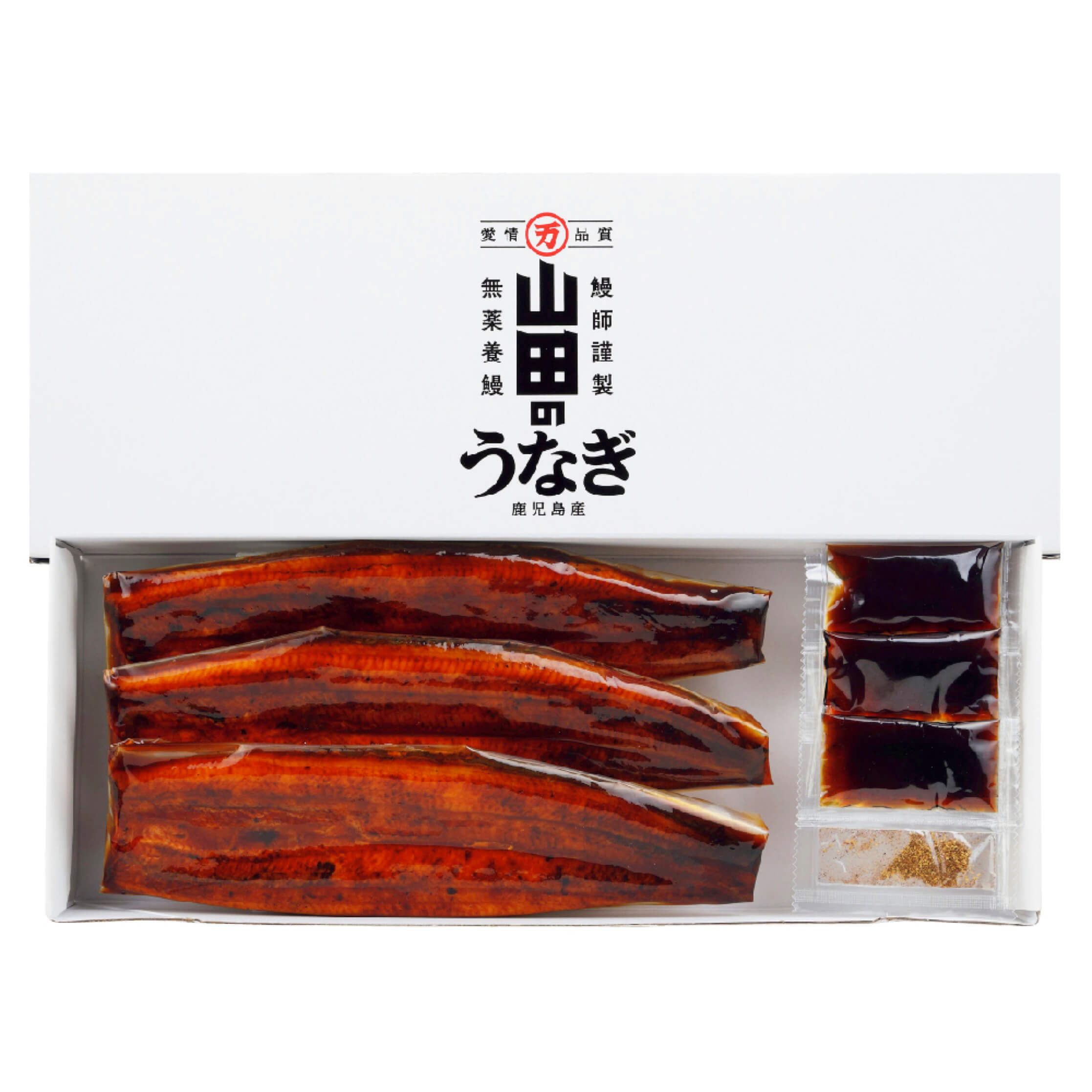 うなぎ蒲焼(鹿児島県産原料、真空パック)3 計390g、山椒付きたれ3