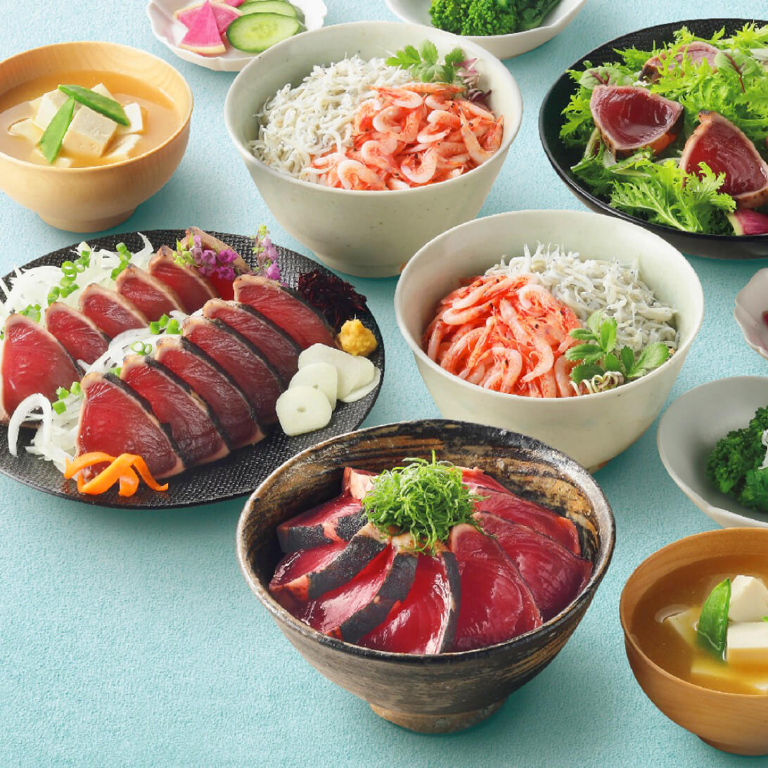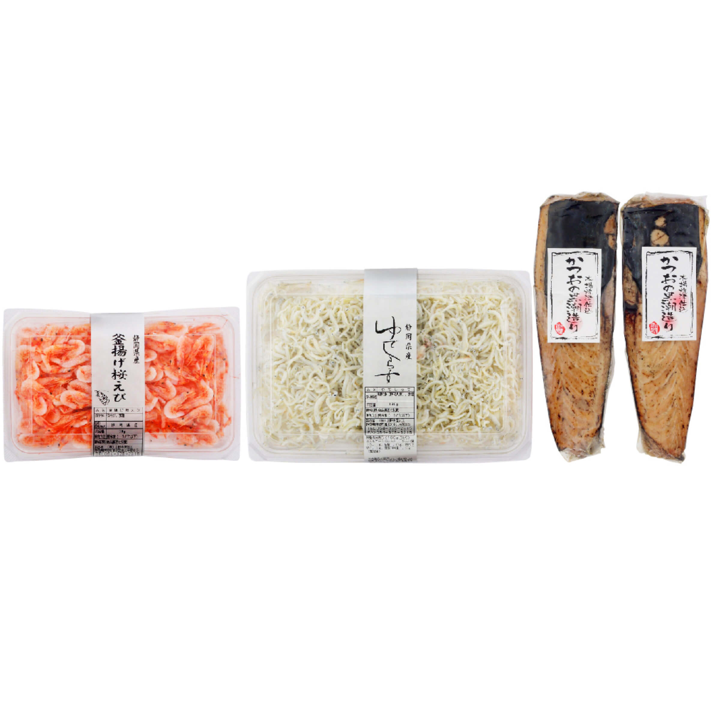 鰹たたき黒潮造り250g×2P、釜揚げ桜えび80g、ゆでしらす130g