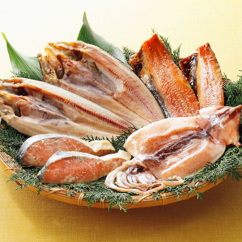 新鮮な魚を塩と味醂で味付して干し上げ、鮭は西京漬けに。北の海の味覚をお届けいたします。