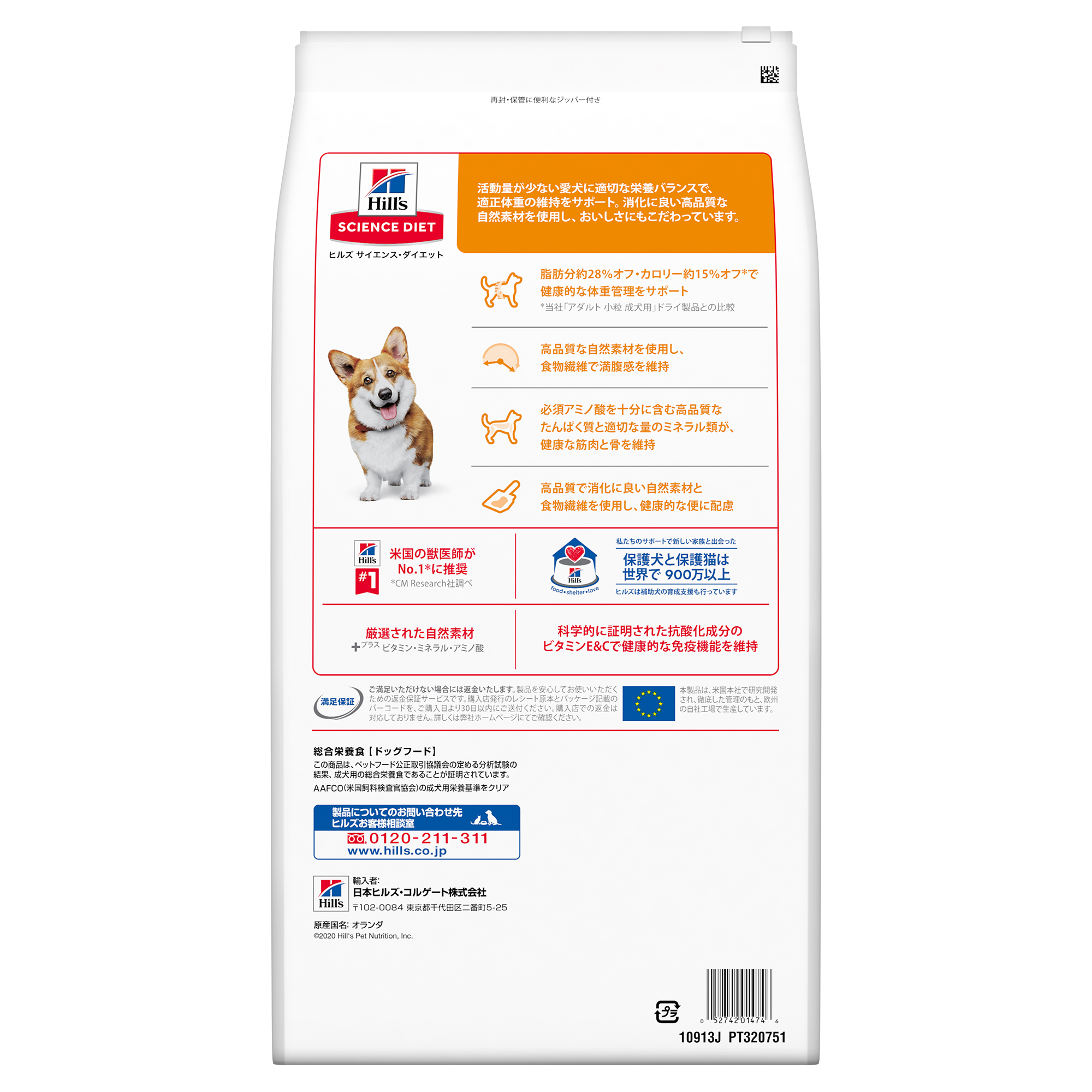 ●脂肪分約28%オフ・カロリー約15%オフ*で健康的な体重管理をサポート *当社「アダルト 小粒 成犬用」ドライ製品との比較