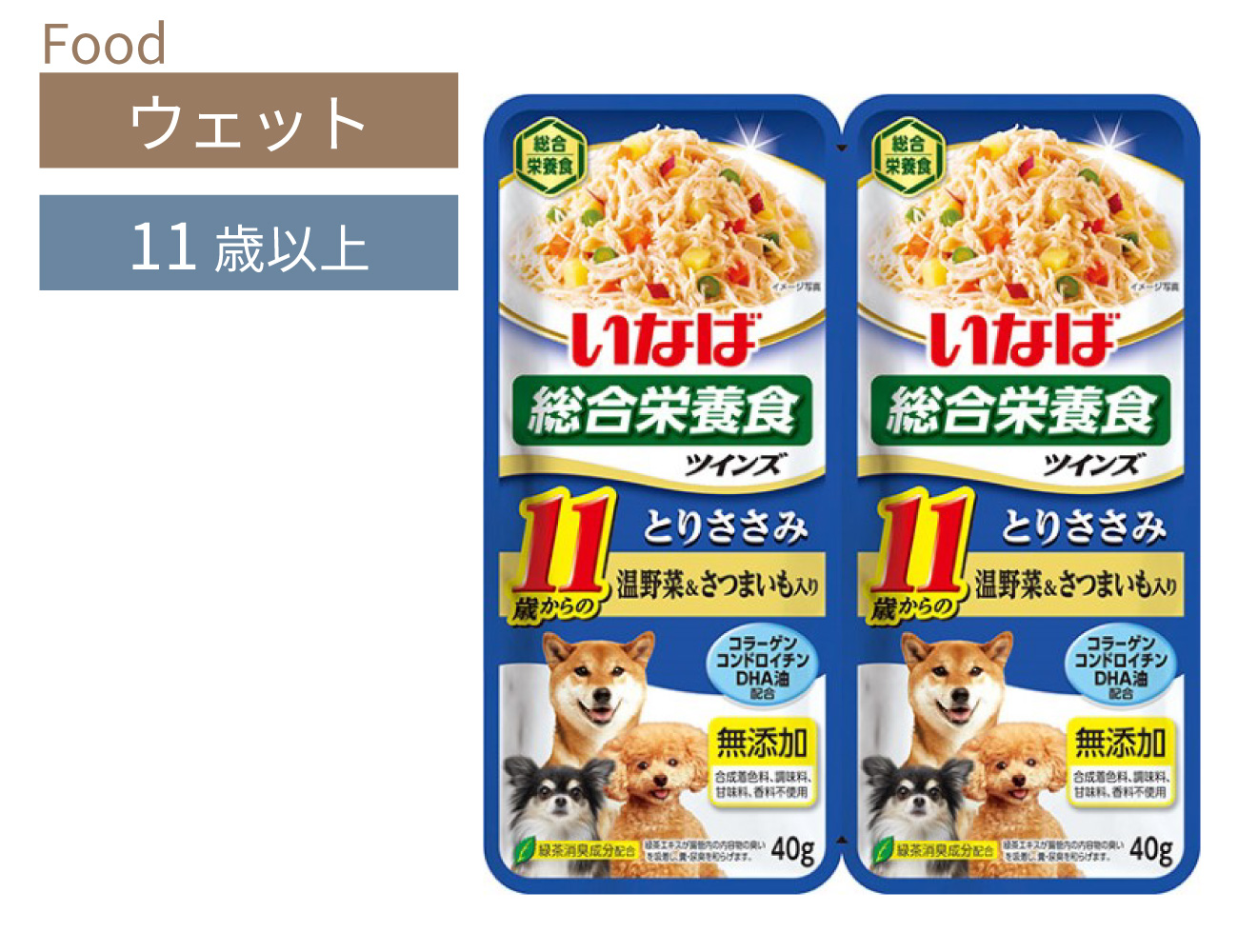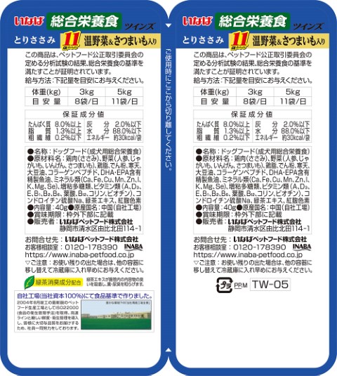 いなば ツインズ 11歳からのささみ温野菜&さつまいも(40g×2) 商品番号pet4124901133617379