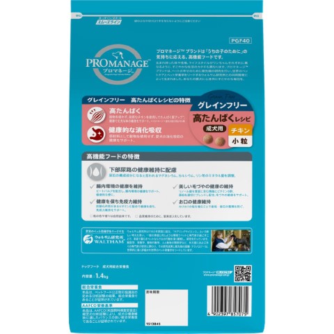 プロマネージ グレインフリー高たんぱくレシピチキン小粒 1.4kg 商品番号pet4124902397857075