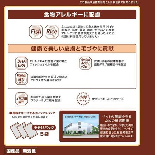 ●主なたんぱく源を魚と米にする事で食物アレルギーに配慮。皮膚や被毛の健康を維持し、美しい毛づやに貢献します。