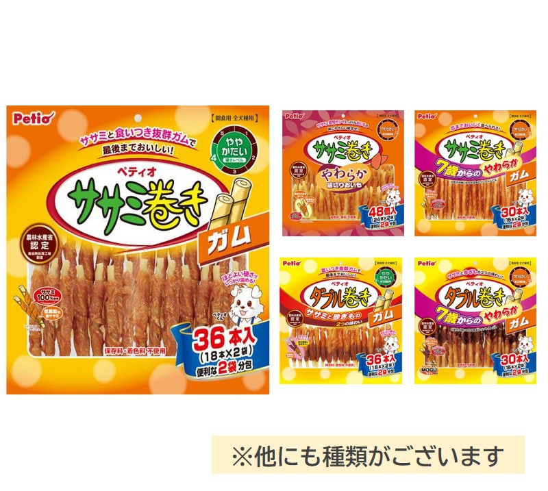 ●低脂肪・良質たん白質豊富なササミをやわらかく仕上げて、芯までおいしく食べられるやわらか弾力ガムに巻きました。シニア犬や小型犬、硬いものが苦手なワンちゃんにもオススメ!着色料不使用。false