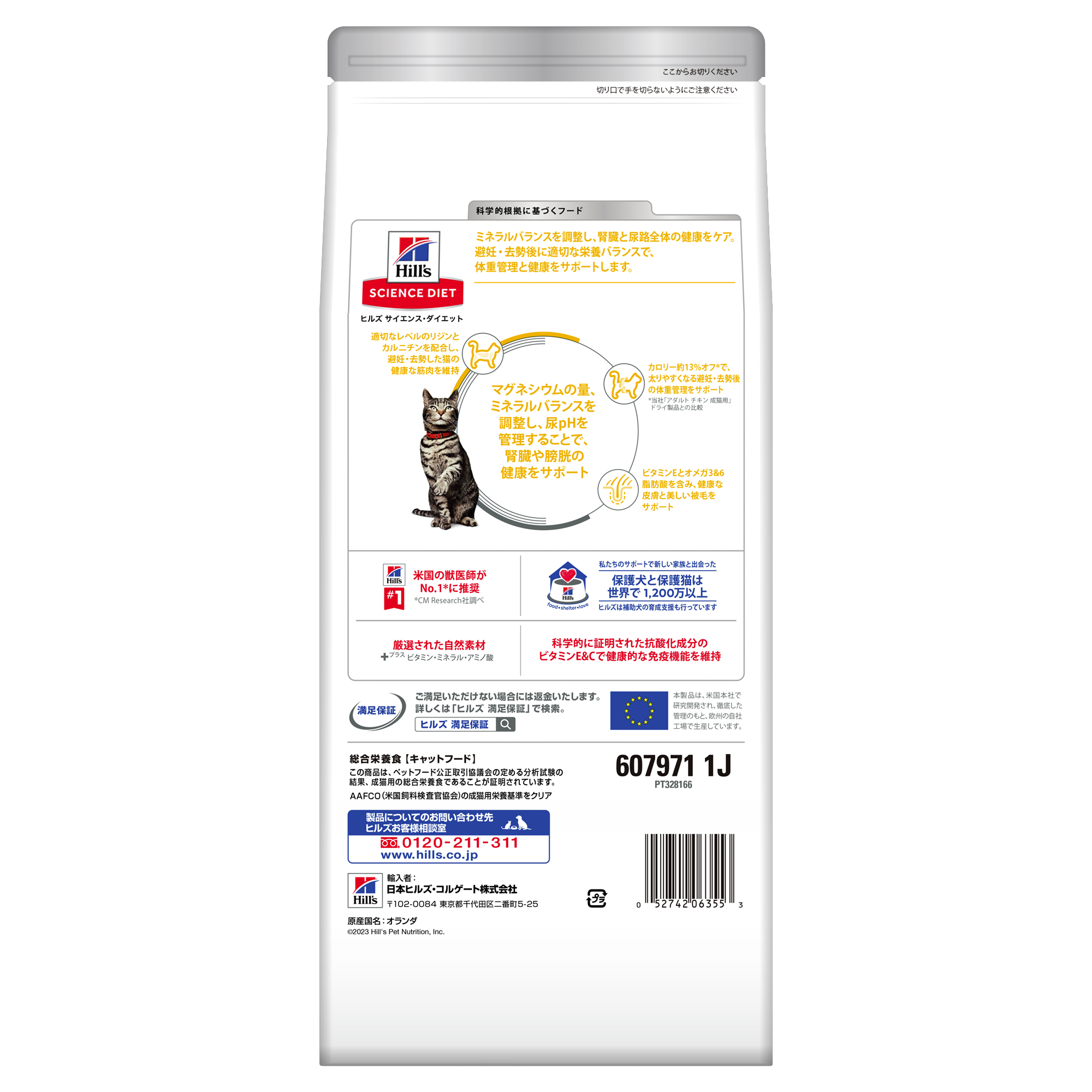 サイエンスダイエット 避妊・去勢猫用 尿路の健康サポート チキン 1.25kg 商品番号pet4130052742063553