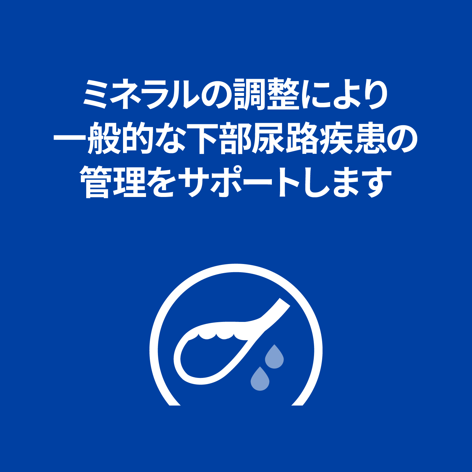 ●ストルバイト尿石とシュウ酸カルシウム尿石形成の抑制および突発性膀胱炎に配慮しています。