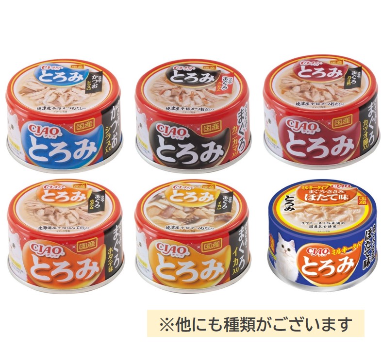 ●ささみ、まぐろ、かつお、焼かつおをおいしく組み合わせ、愛猫の喜ぶ素材をトッピング。焼津産本格かつおだし又は北海道産本格ほたてだしを使用しています。ビタミンE配合。false