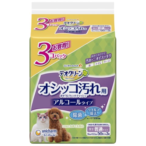 デオクリーン オシッコ汚れおそうじウェットティッシュ 50枚入×3個パック 商品番号pet4144520699656884