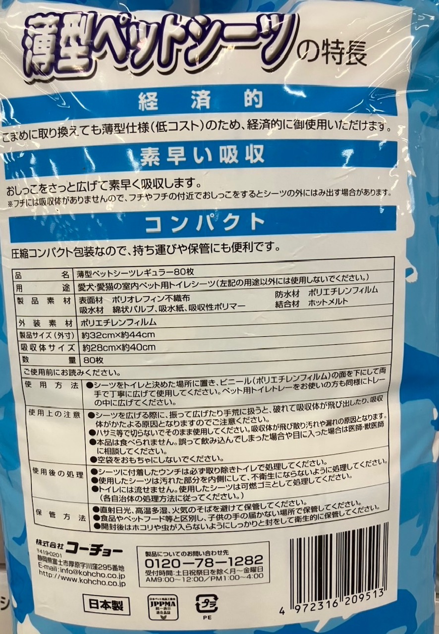 薄型ペットシーツレギュラー 商品番号pet4144972316209513