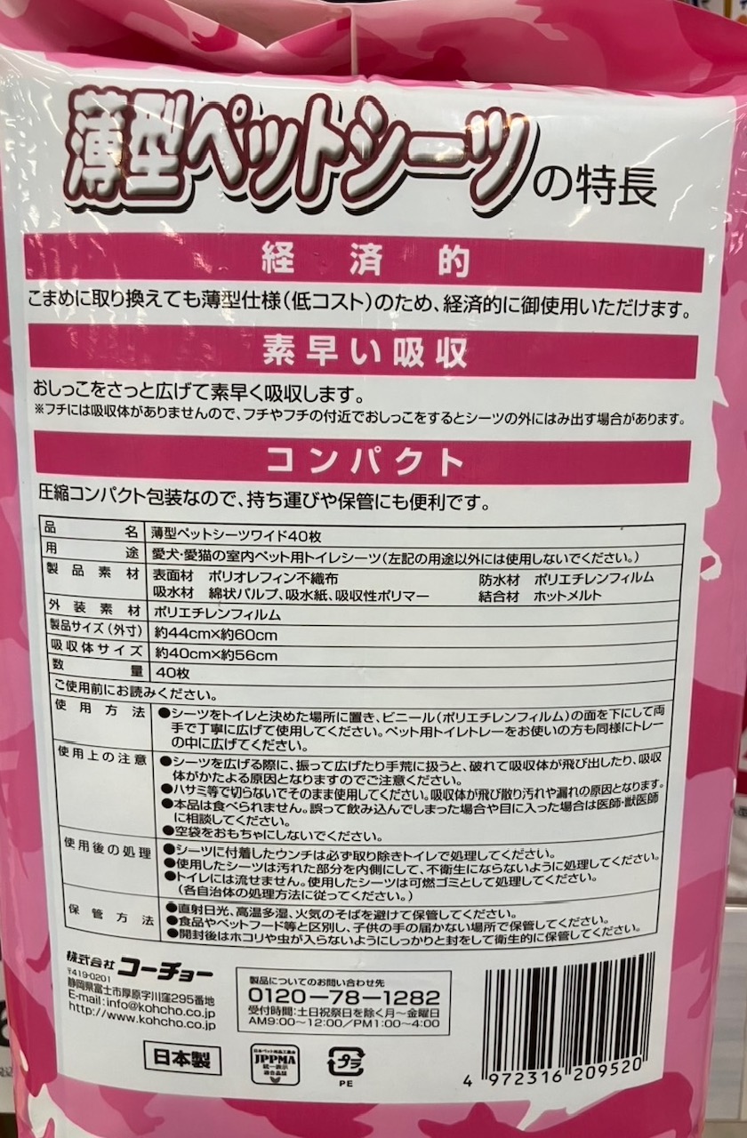 ●こまめに取り換えても経済的な薄型タイプの1~2回交換ペットシーツ。