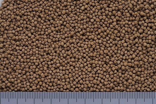 フィッシュミール、小麦粉、かしこ、大豆ミール、ビール酵母、小麦胚芽、とうもろこし、乳化剤、海藻粉末、米ぬか、ガーリック、アミノ酸(メチオニン)、生菌剤、梅エキス、カロチノイド、ビタミン類(塩化コリン、E、C、イノシトール、B5、B2、A、B1、B6、B3、K、葉酸、D3、ビオチン)、ミネラル類(P、Fe、Mg、Zn、Mn、Co、I)