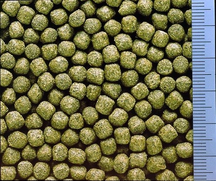 小麦粉、大豆ミール、フィッシュミール、米ぬか、小麦ふすま、濃縮アルファルファ、グルテンミール、わかめ、シルクワームミール、魚油、ビール酵母、海藻粉末、ビタミン類(塩化コリン、E、C、B5、B2、A、B1、B6、B3、K、葉酸、D3、ビオチン)、ミネラル類(P、Fe、Mg、Zn、Mn、Co、Cu、I、Se)