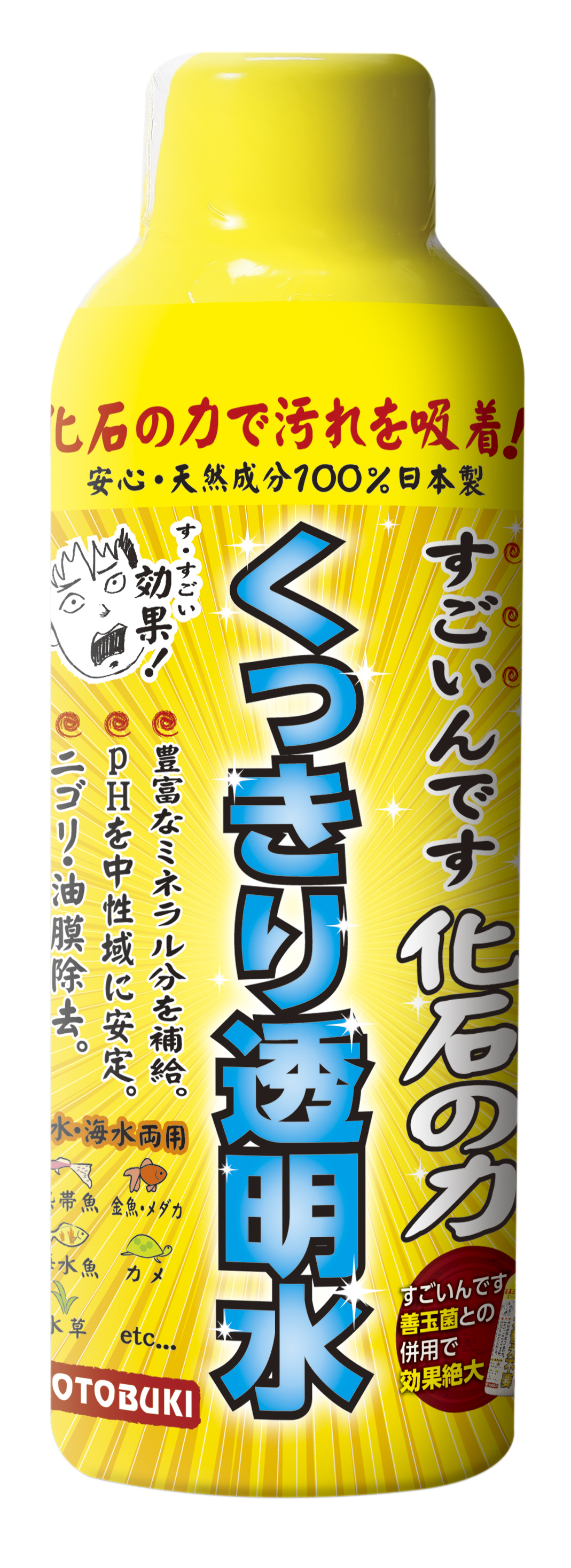 ●貝化石の力で汚れを吸着して透明な水に変えます。良質で豊富なミネラル分が凝縮されており、生体や水草の成長に貢献します。