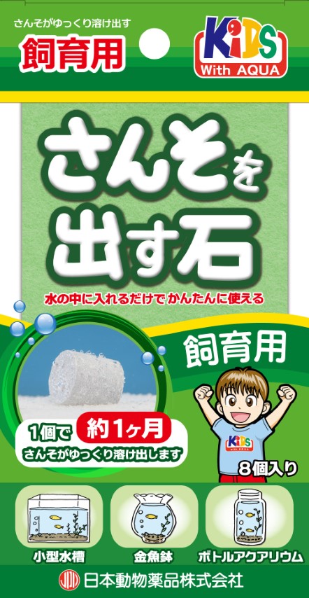 ●水中に入れるだけで酸素を約1か月供給。水の中に入れると酸素(さんそ)が発生する、さんそを出す石です。水中に酸素が溶け出し、観賞魚に酸素を供給します。電気を使用せずに酸素を供給できますので、小さな水槽に最適です。