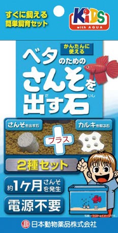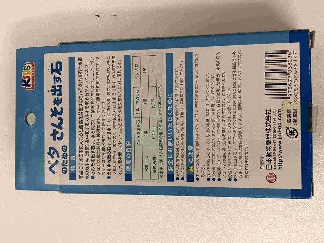 ●水の中に入れると酸素を発生するさんそを出す石と水道水のカルキ(塩素)を中和するカルキを取る石が入っています。