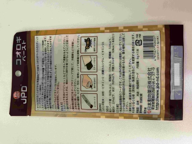 ●すぐに与えることができる常温保存(未開封時)可能なコオロギペーストのスティックフードです。スティック1本にコオロギ11匹分の栄養(タンパク質換算)を配合しています。食用として養殖されたヨーロッパイエコオロギのパウダーを使用しています。
