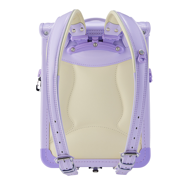 ①背おいやすい…「ふわりぃ背カン」…肩ベルト付根の立上機能、成長に合わせて左右に広がる 「ふわりぃ肩ベルト」…両サイドと中央のクッションで負担軽減。 「ふわりぃクッションエアリーフォーム」…3点型背あてでフィット感を追求