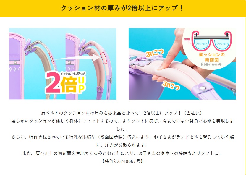 ■楽ッション®肩ベルト(フィットちゃん):クッション性が高く背負い心地が良い(荷重分散機能)