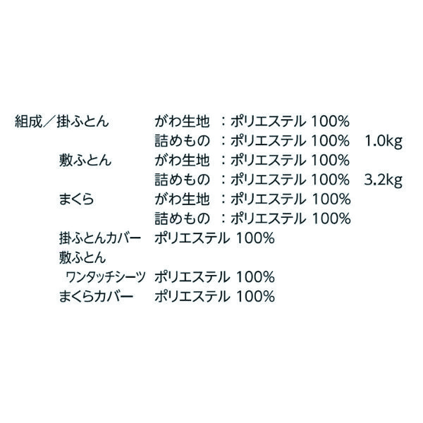 掛ふとん、まくらは手洗いできます。すぐに使える寝具がそろってます