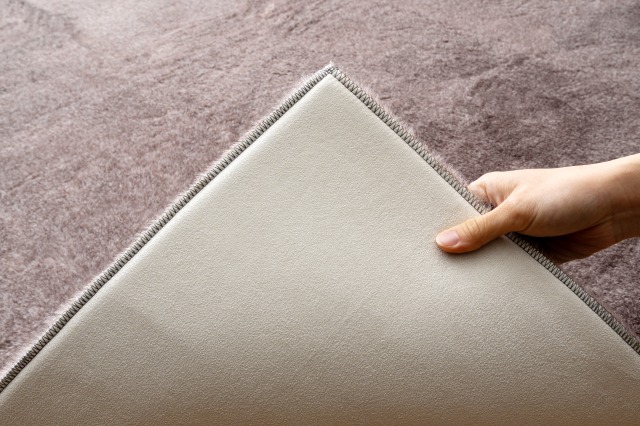 ■ヘムをつけないオーバーロック加工を施し、スッキリとしたおしゃれなラグに仕上げました。