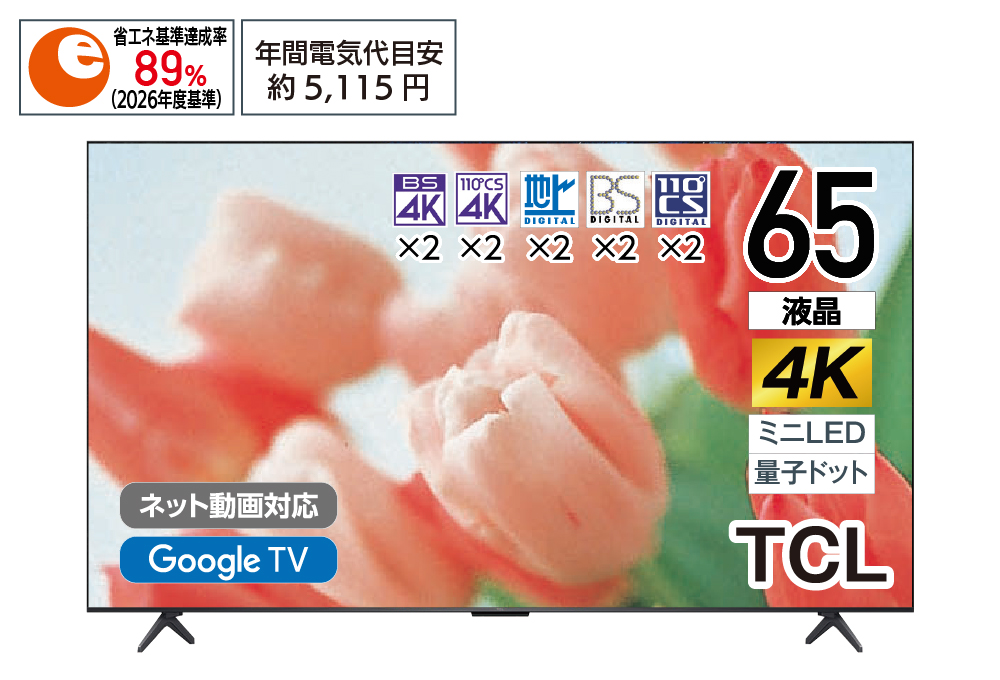 【九州で20点限り】【配達専用】【イオン限定】TCL 65型「4Kチューナー搭載」miniLED+量子ドット液晶テレビ【4月10日(金)以降のお渡し】 商品番号special2274589449351035