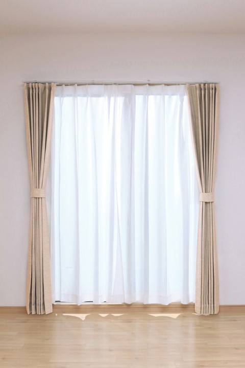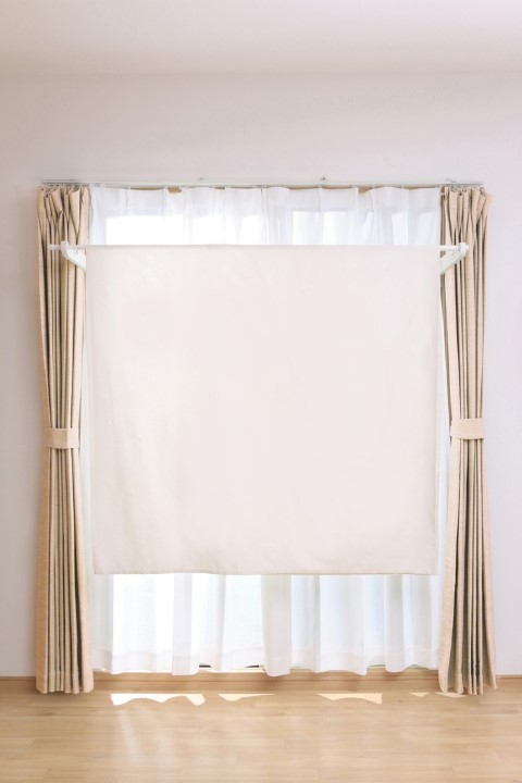 使用しない時はコンパクトに折りたため、カーテンの裏にスッキリ隠れます。