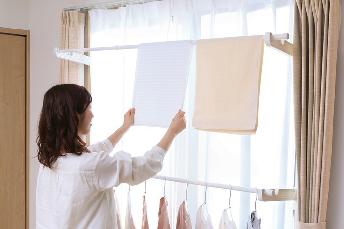 窓のすぐ内側に洗濯物が干せるため、室内に入ってくる日光を最大限に活用できます。