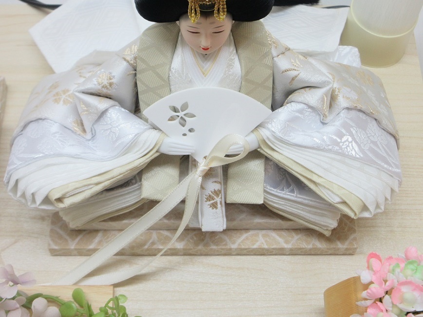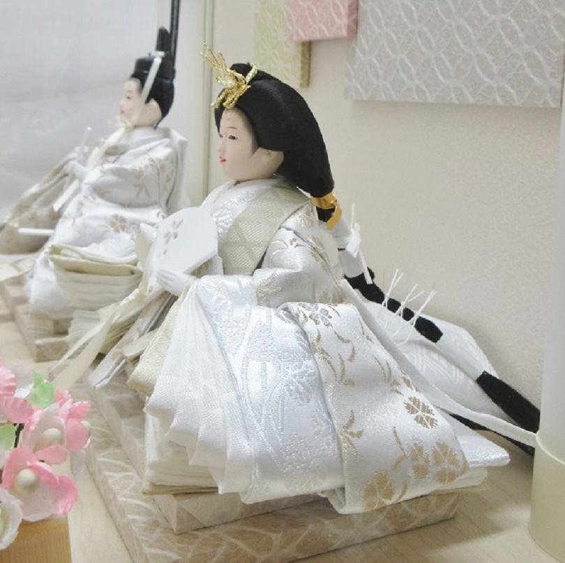 おひなさまは着物の裾までも手間暇かけた仕上がりになっています 。