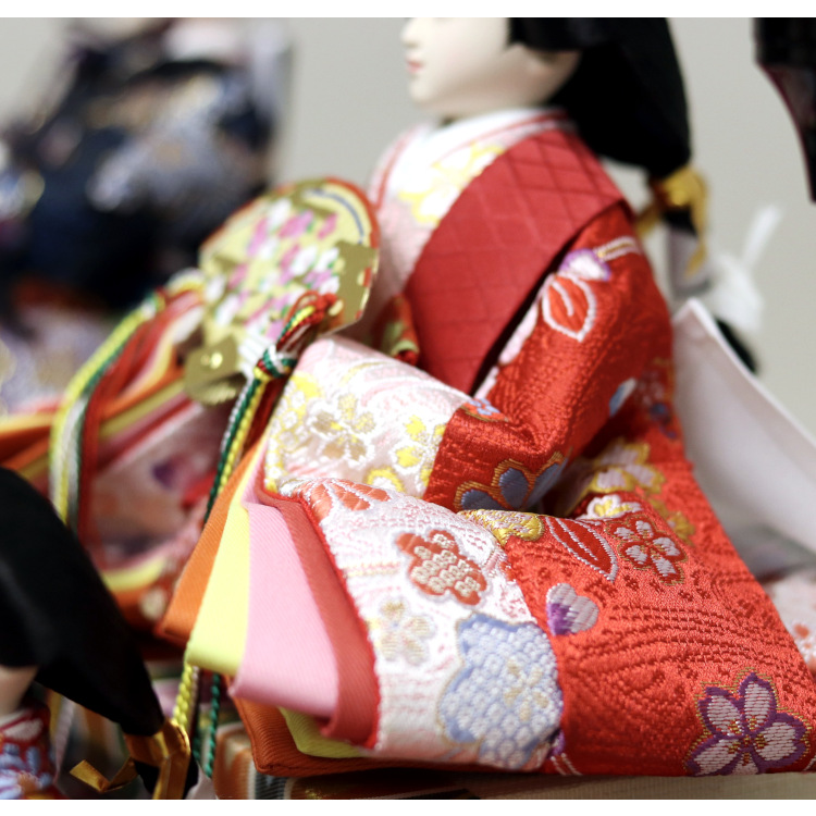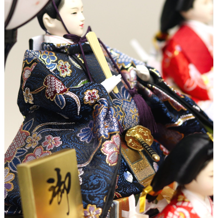 紺と赤を基調とした華やかな衣裳のお人形です。