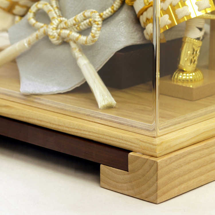 デザイン的な背景が特徴的な木目を活かした足付きアクリルケース飾りです。true